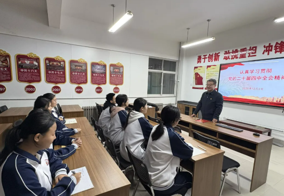2025年12月2日下午,山东省济南第十五中学第二党支部在厚德楼三楼党员活动室开展了“微党课·我来讲”活动。本次活动由党支部书记姜宏滨主持。全体党员和初二、初三年级9名入团积极分子参加活动。 首先,青年党员吴寒冰讲授《以史为鉴守初心,以教践行担使命》微党课。她从溯源初心本质:从文化到党史;明晰教育使命:为党育人,为国育才;践行永久奋斗:做学生看得见的党员等三个方面,完美诠释了一个青年党员教师对教育初心的理解和践行。 接着,党总支委员、副校长韩名安讲授微党课,主题是《以教育家精神铸魂强师,谱写教育强国建设华章》,内容包括:深刻认识教育强国建设的重大意义、以教育家为榜样,弘扬教育家精神、担当新时代教育使命,践行师德规范等三部分。通过学习,全体党员对教育家精神有了更加深刻的理解,进一步明确了培养一代又一代拥护中国共产党领导和中国特色社会主义制度、立志为党和国家事业奋斗终身的栋梁之才,是每一位党员教师终身践行的历史使命。