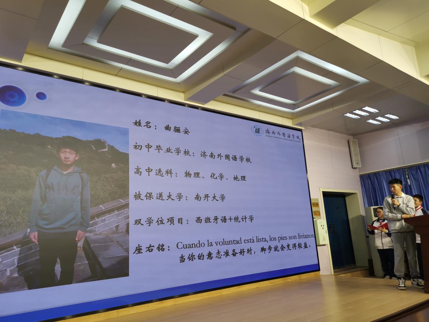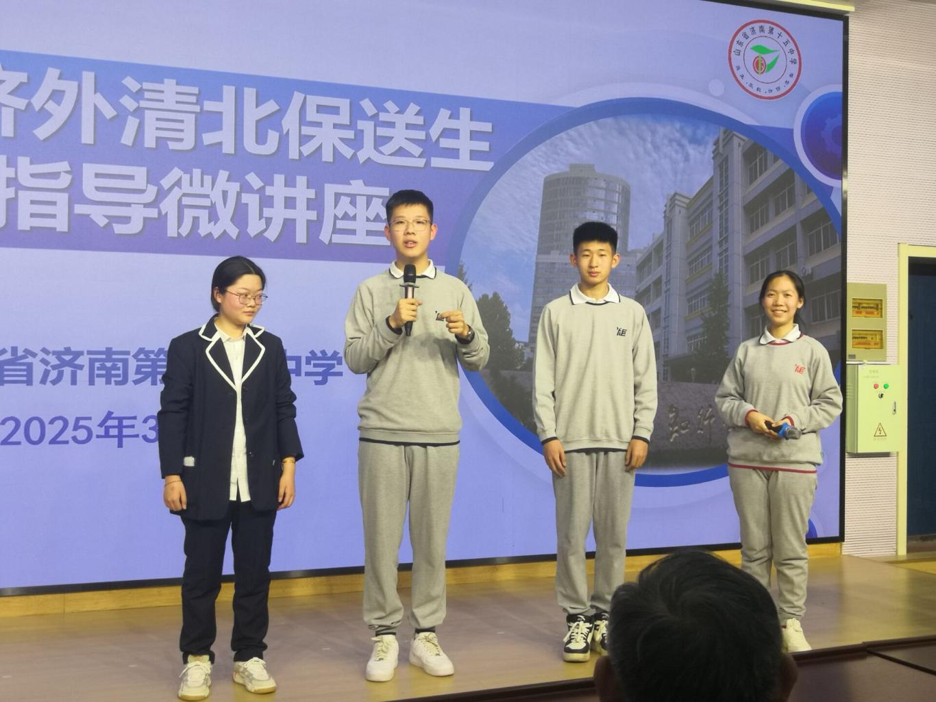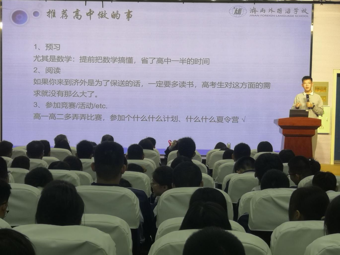 为激励学生奋发向上、全面发展,2025年3月10日下午,我校邀请到今年济南外国语学校4名保送生高睿卿(北京大学)、张宸硕(清华大学)、曲骊安(南开大学)、朱怡婷(北京大学)到我校进行学法指导活动。