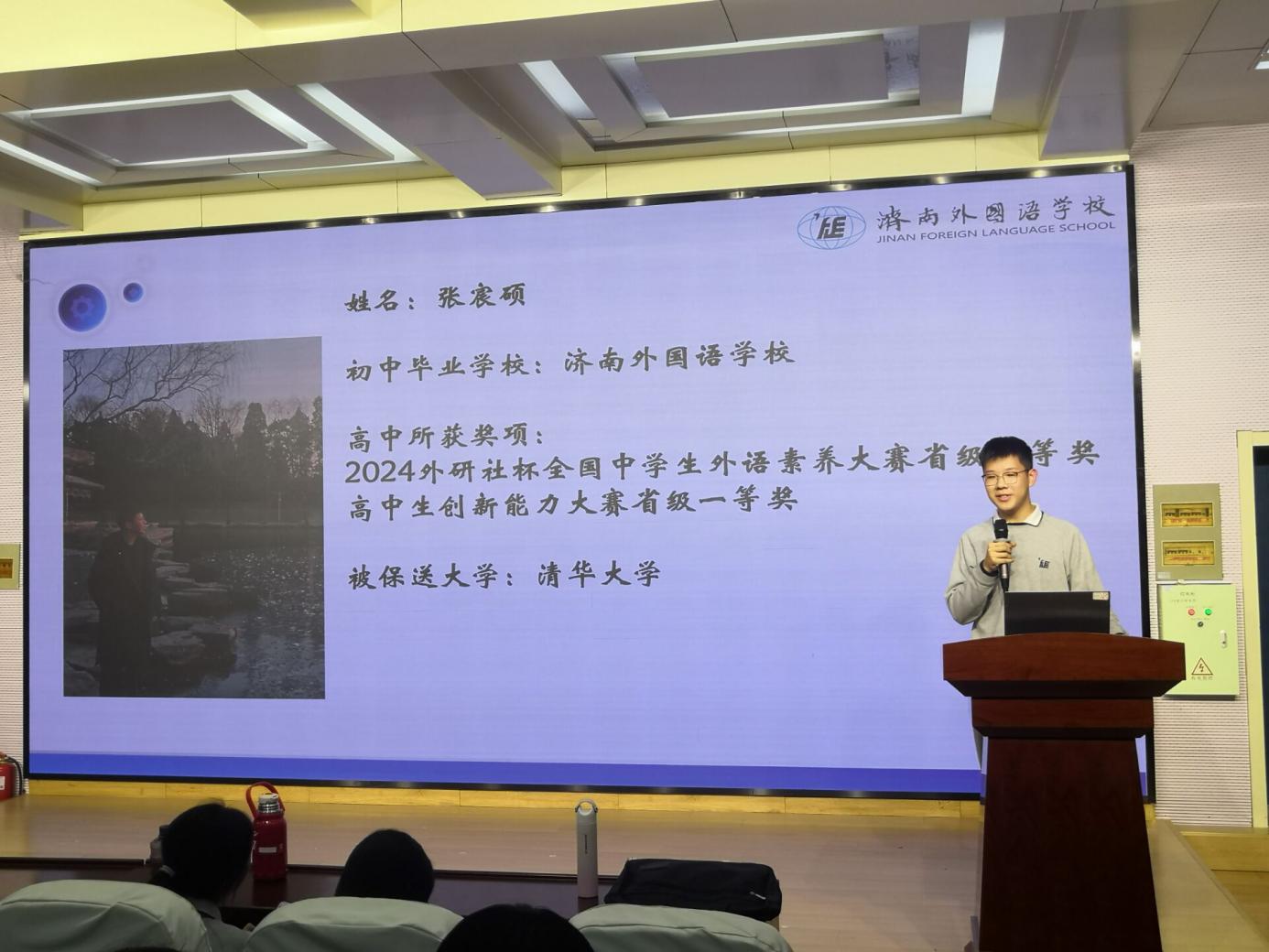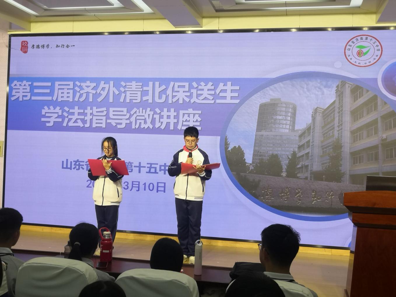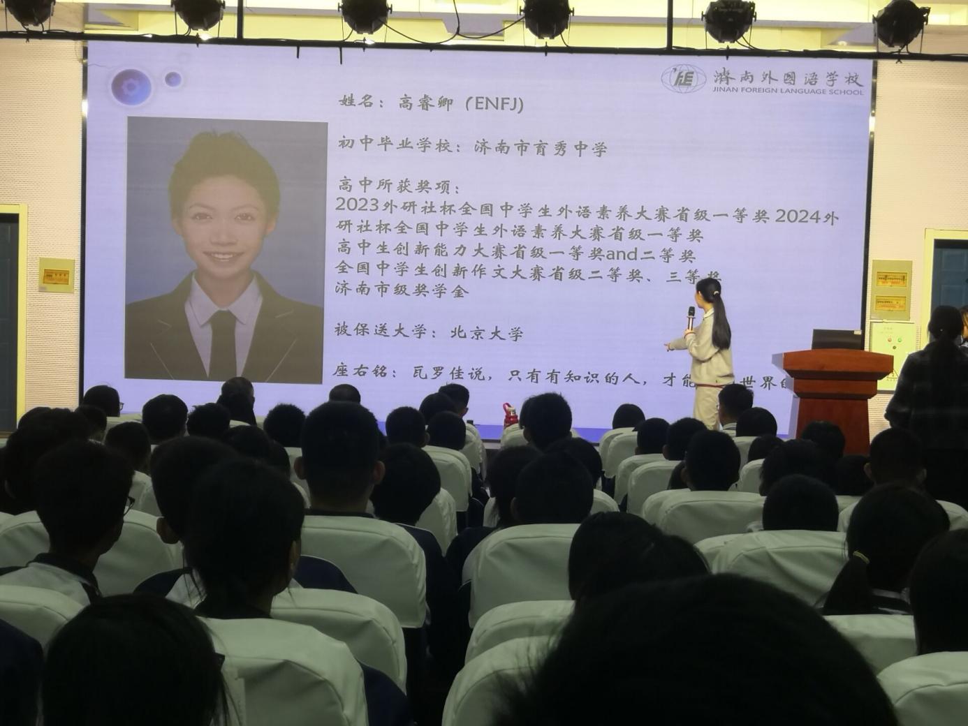 为激励学生奋发向上、全面发展,2025年3月10日下午,我校邀请到今年济南外国语学校4名保送生高睿卿(北京大学)、张宸硕(清华大学)、曲骊安(南开大学)、朱怡婷(北京大学)到我校进行学法指导活动。